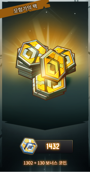“모험가의 팩”에는 총 1,432 코인이 포함되어 있으며, 구성은 다음과 같습니다:
